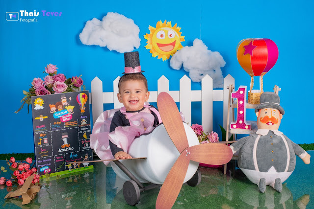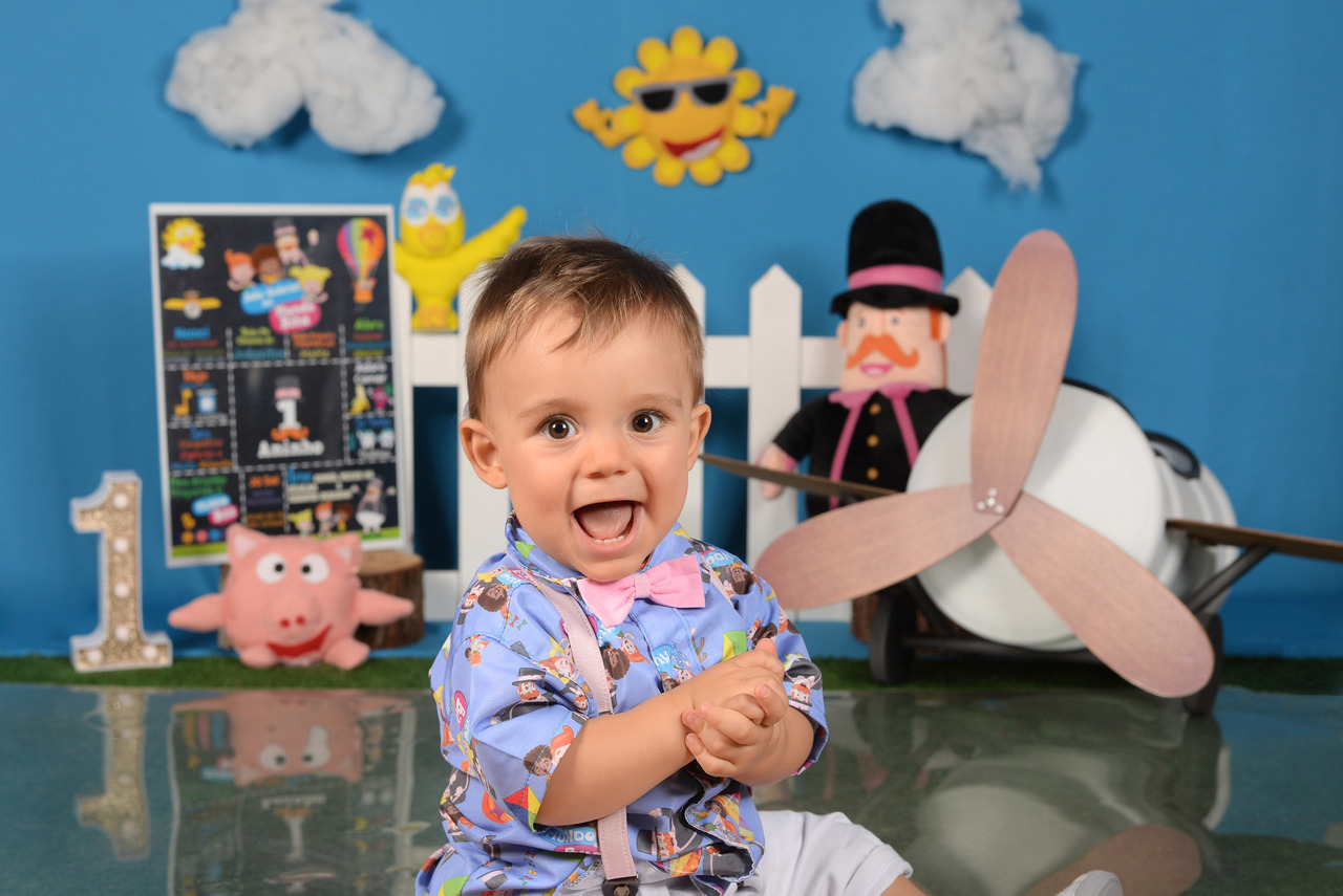 Buscamos sempre trabalhar nas cores do tema que a mamãe escolher, no caso de fazer uma festinha temática no primeiro ano podemos também seguir as cores do tema para criar uma combinação harmônica caso as fotos passem no dia do evento, ou use as fotos do ensaio para decorar a mesa, no convite etc.